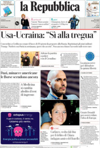 “Usa-Ucraina: Sì alla tregua” (La Repubblica).