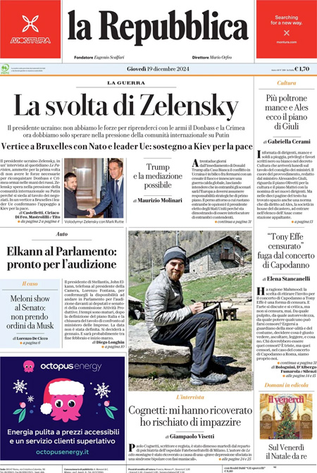 “La svolta di Zelensky”. (La Repubblica)