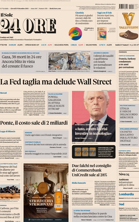 “La Fed taglia ma delude Wall Street”. (Il Sole 24 Ore)