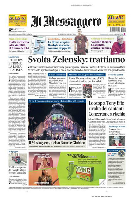 “Svolta Zelensky: trattiamo”. (Il Messaggero)