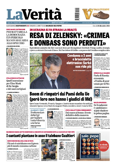 “Resa di Zelensky: Crimea e Donbass sono perduti”. (La Verità)