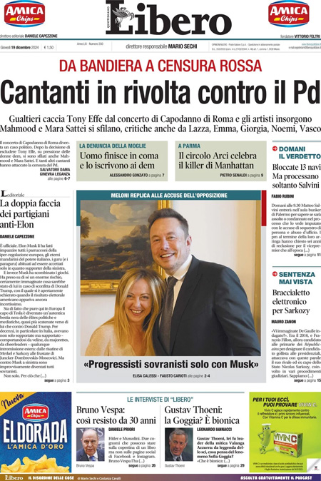 “Cantanti in rivolta contro il Pd”. (Libero)
