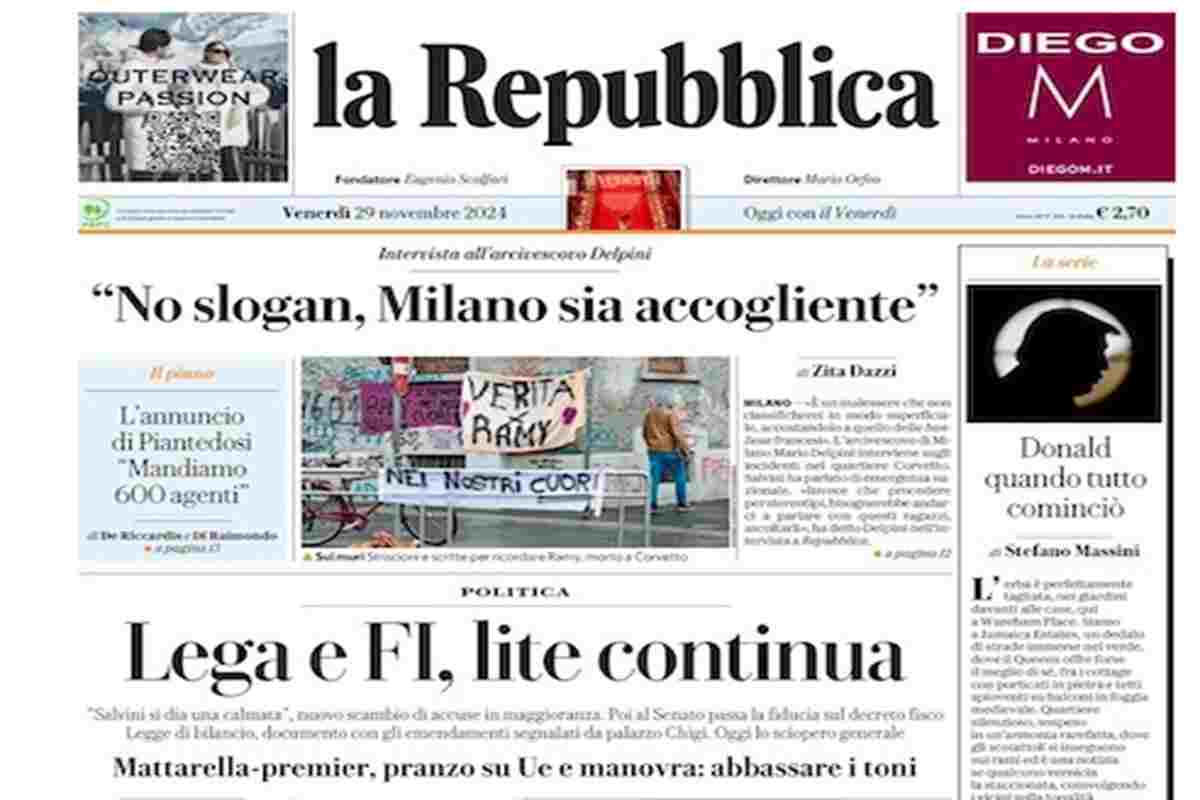 Home » L’EDICOLA, La Repubblica: “Lega e FI, lite continua”. Il Giornale: “Lo sciopero di pochi blocca tutto il Paese”. Il Manifesto: “Red friday”
