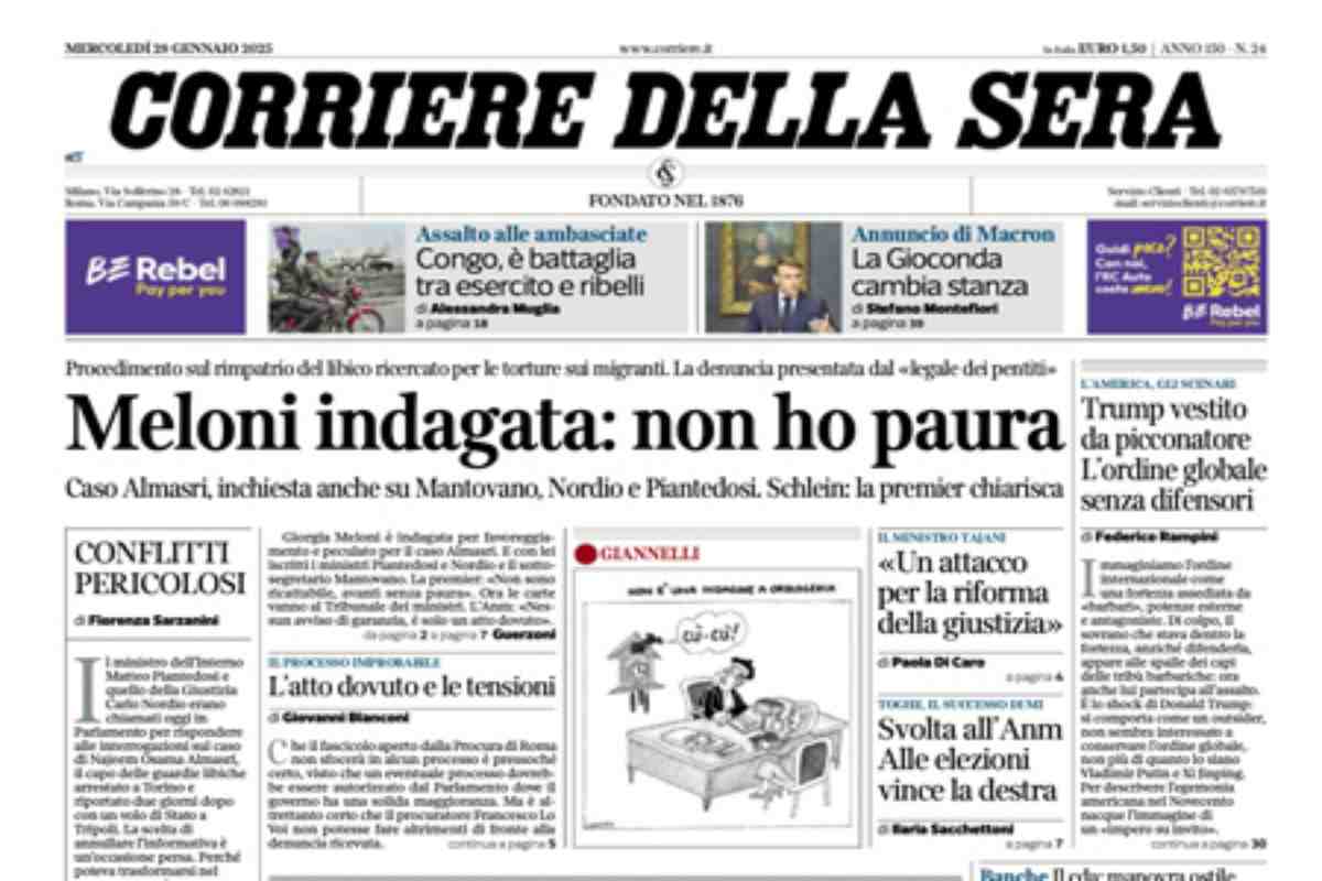 L'EDICOLA, La Stampa: "Almasri, indagato il governo". Il Corriere: "Meloni indagata: non ho paura". Il Fatto Quotidiano: "Meloni spaccia un atto dovuto per un complotto" - Blitz Quotidiano