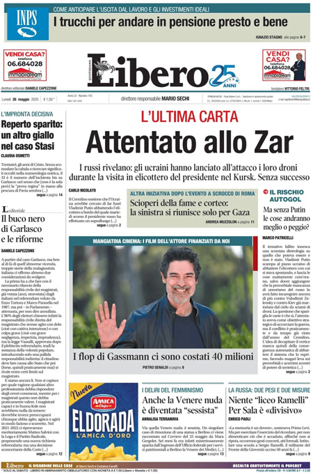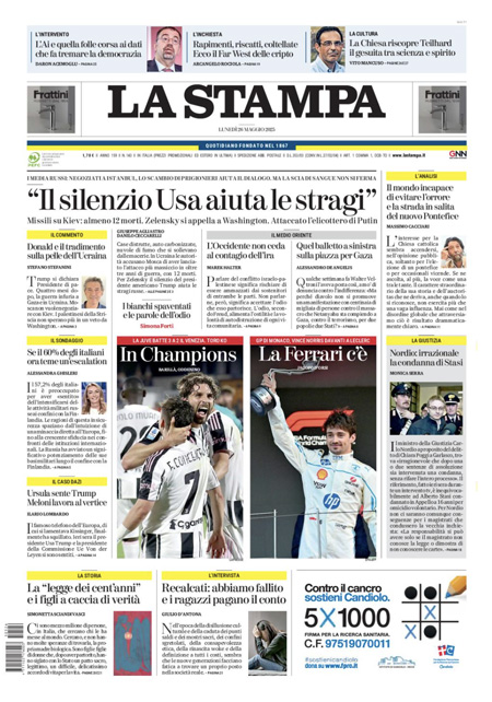 L'EDICOLA, La Stampa: "Il silenzio Usa aiuta le stragi". Libero: "Attentato allo Zar". Corriere: "Trump rinvia i dazi per l'Europa" (foto dal web) - Blitz quotidiano