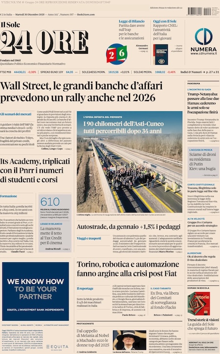 “Wall Street, le grandi banche d’affari prevedono un rally anche nel 2026” (Il Sole 24 ore).