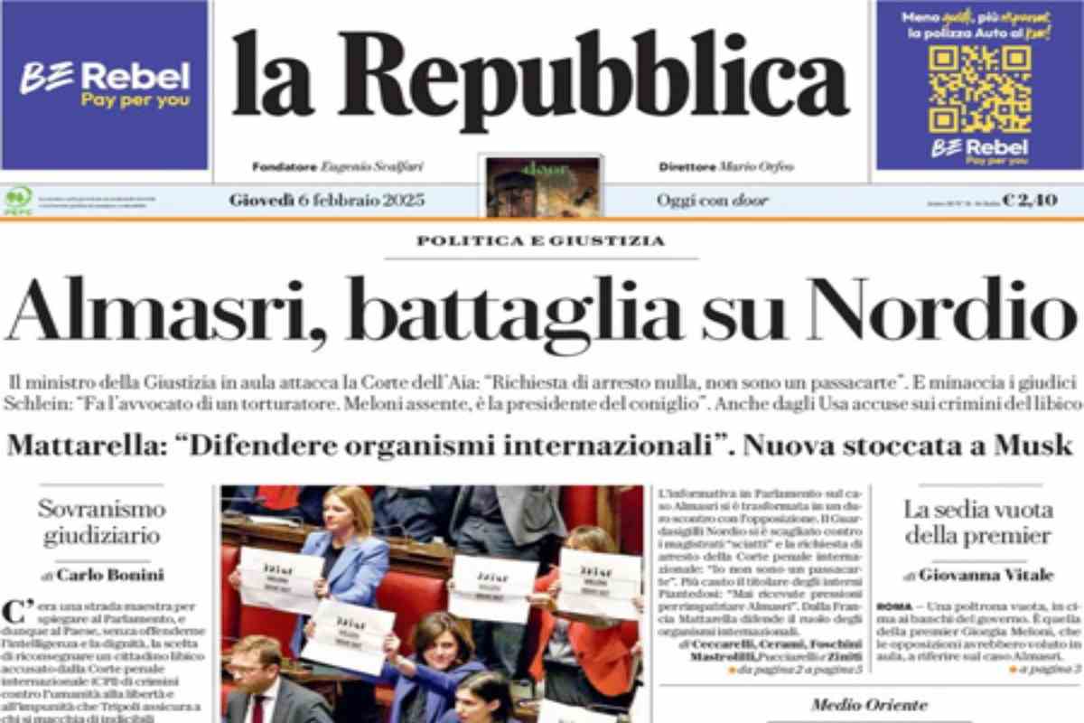 “Almasri, battaglia su Nordio” (La Repubblica).