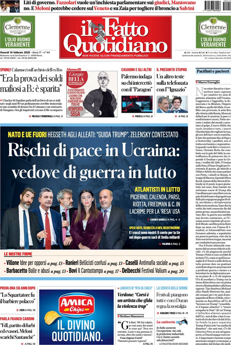 “Pacifinti e paciveri”. L’editoriale di Marco Travaglio: “Non esiste discarica o inceneritore tanto capiente per smaltire tre anni di pattume atlantista sull’Ucraina. L’aggressore e l’aggredito, la democrazia e la dittatura, l’Impero del Bene e quello del Male, il conflitto non provocato, le armi fino alla vittoria sulla Russia, Mosca in default per le sanzioni, la pace o i condizionatori accesi”.
