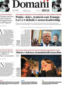 “Putin: Kiev, tratterò con Trump”. La Ue è debole e senza leadership” (Domani).