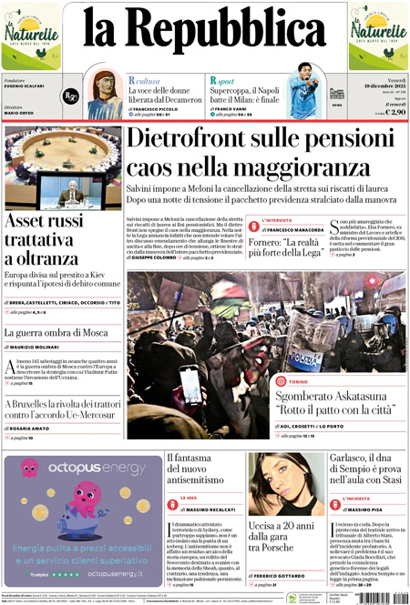 “Dietrofront sulle pensioni, caos nella maggioranza” (La Repubblica).