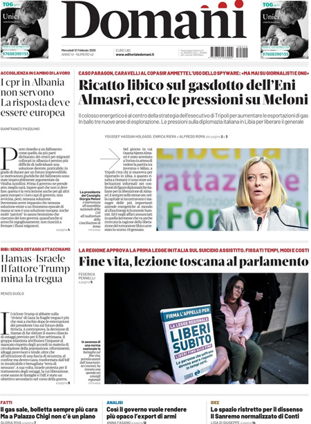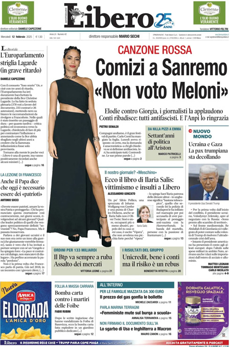 Home » L’EDICOLA, Repubblica: “Fine vita, c’è una legge”. Il Corriere: “Libia: al via l’indagine su Nordio”. Libero: “Comizi a Sanremo: Non voto Meloni”