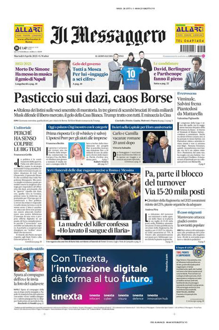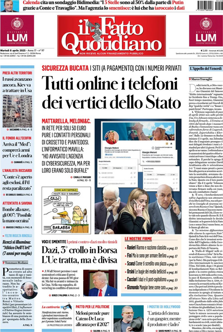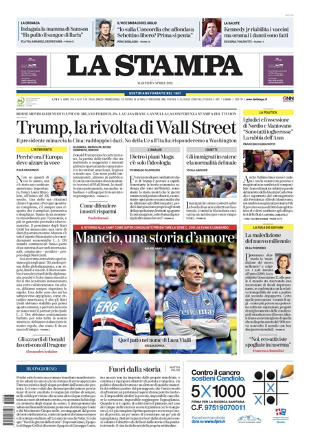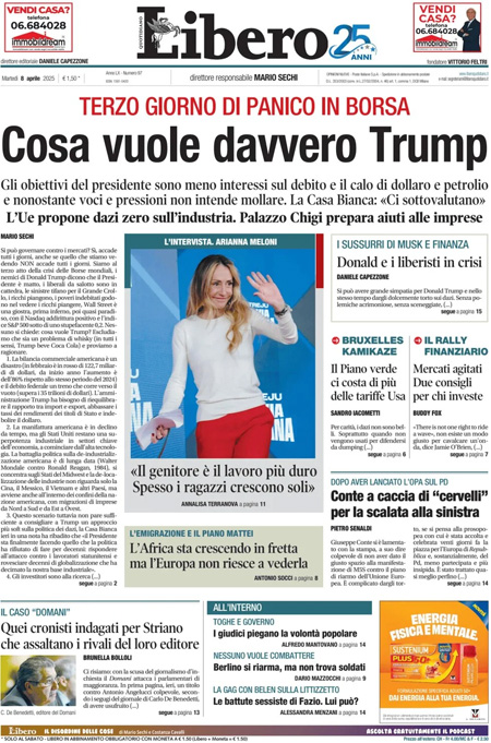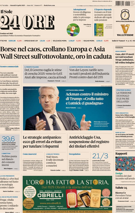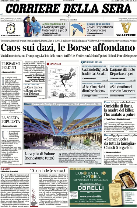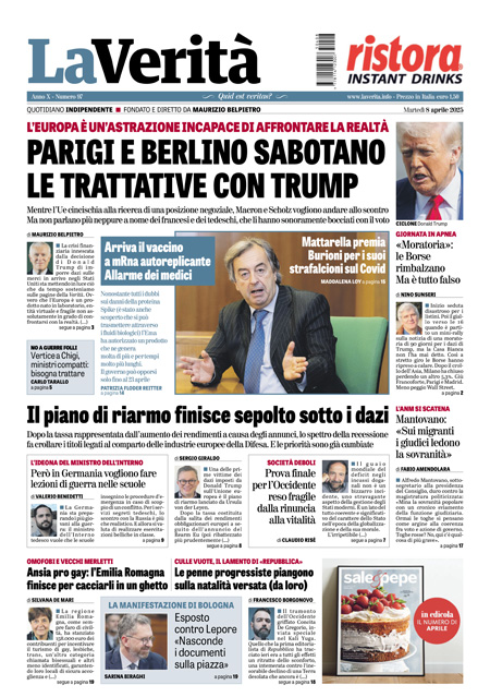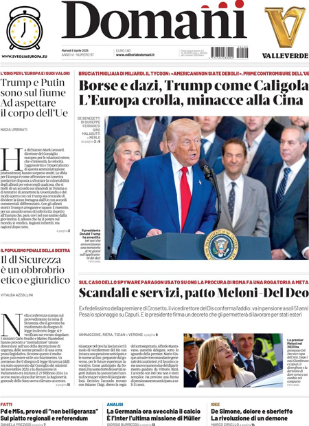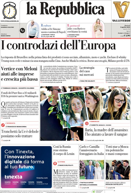 Home » L’EDICOLA, Repubblica: “I controdazi dell’Europa”. Il Corriere: “Caos sui dazi, le Borse affondano”. La Verità: “Parigi e Berlino sabotano le trattative con Trump”