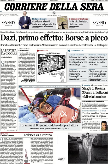 “Dazi, primo effetto: Borse a picco” (Il Corriere della Sera).