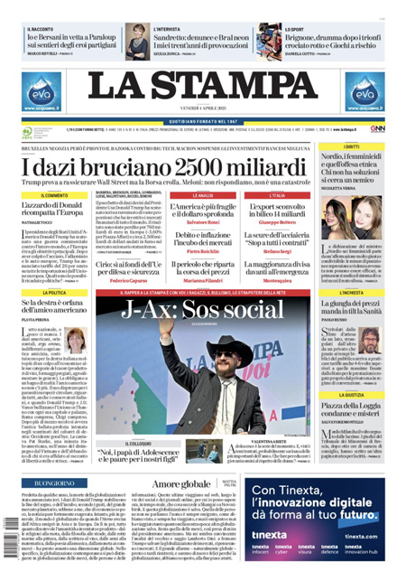 “I dazi bruciano 2500 miliardi” (La Stampa).