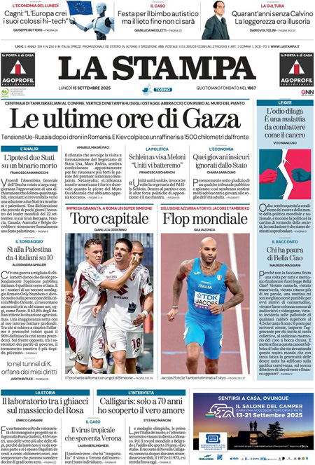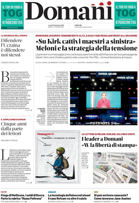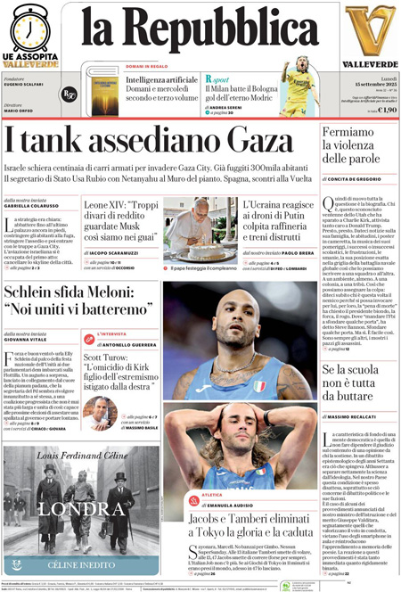 Home » L’EDICOLA, Repubblica: “I tank assediano Gaza”. La Stampa: “Le ultime ore di Gaza”. La Verità: “Ecco le idee per cui hanno ucciso Kirk”