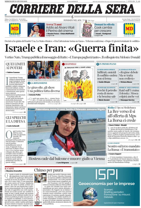 “Israele e Iran: Guerra finita” (Il Corriere della Sera).