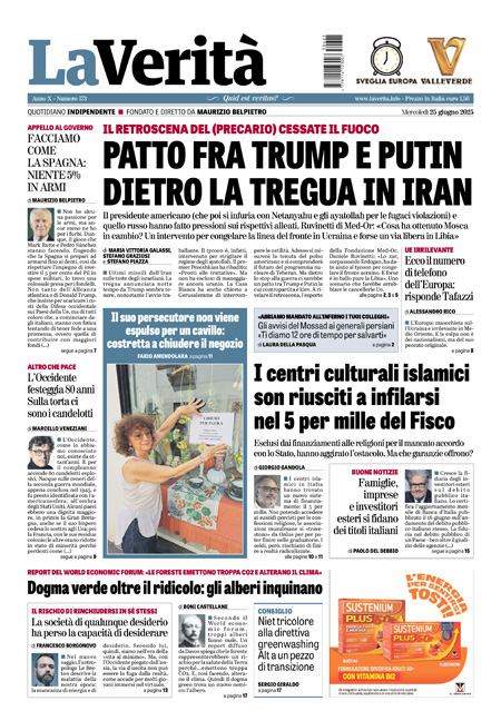 “Patto fra Trump e Putin dietro la tregua in Iran” (La Verità).
