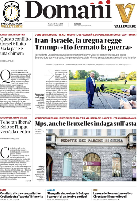 “Iran-Israele, la tregua regge. Trump: Ho fermato la guerra” (Domani).