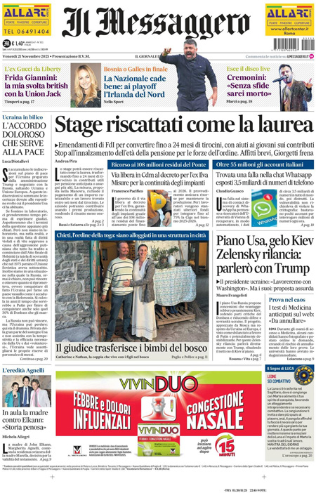 L'EDICOLA, Repubblica: "Kiev e Ue, no al piano Usa. Zelensky: vedrò Trump". La Stampa: "Ucraina, ecco i 28 punti. Zelensky apre a Trump". Il Fatto: "Bel Garante della Privacy, voleva spiare i dipendenti" - Blitz Quotidiano
