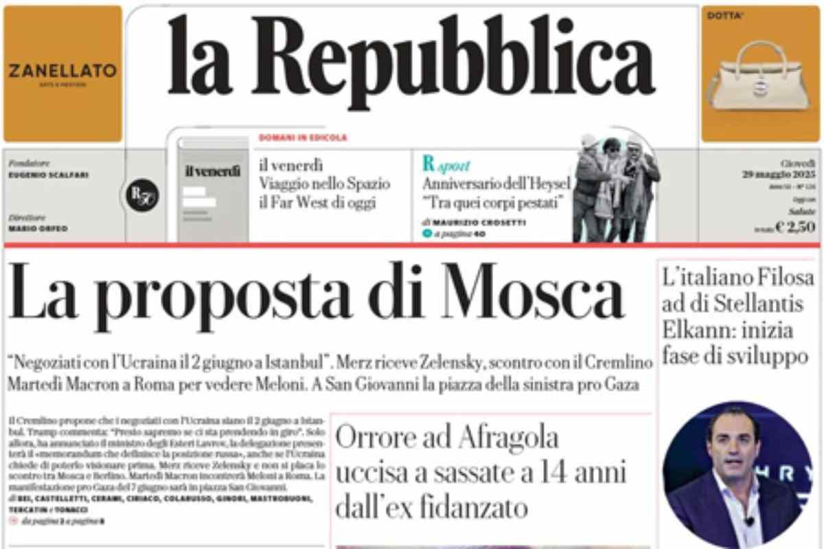 L'EDICOLA, Repubblica: "La proposta di Mosca". Il Corriere: "Alta tensione Berlino-Mosca". La Verità: "L'Europa chiede altre tasse sulle auto diesel e benzina" - Blitz Quotidiano