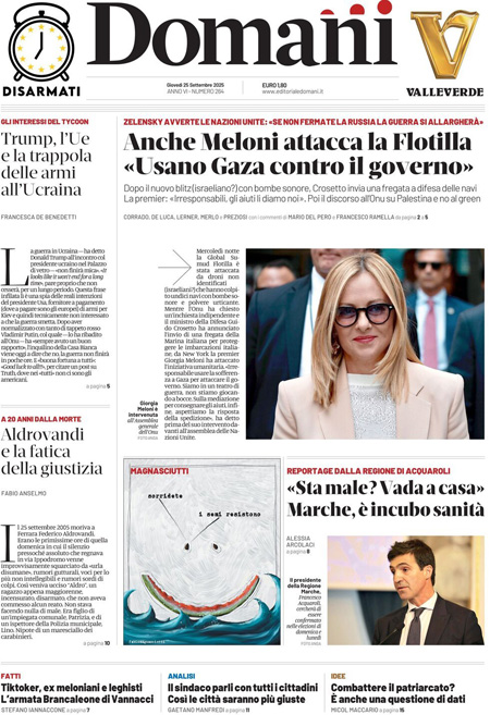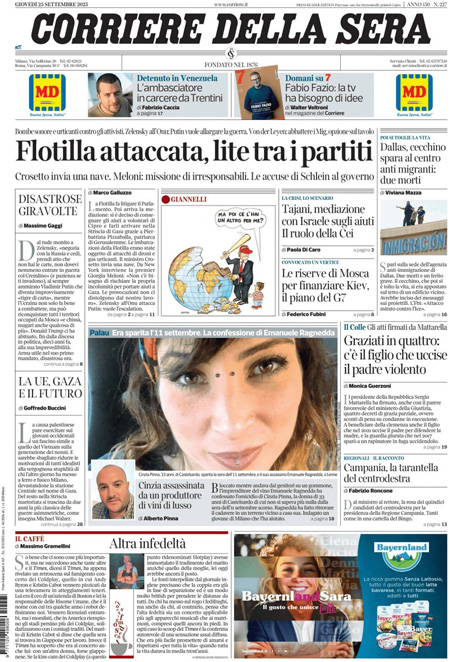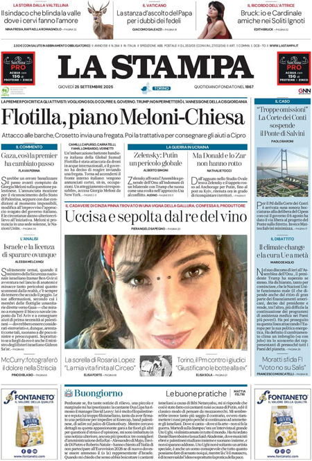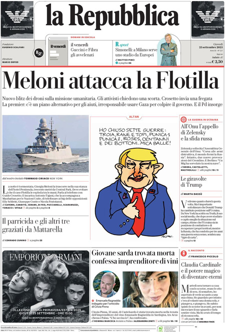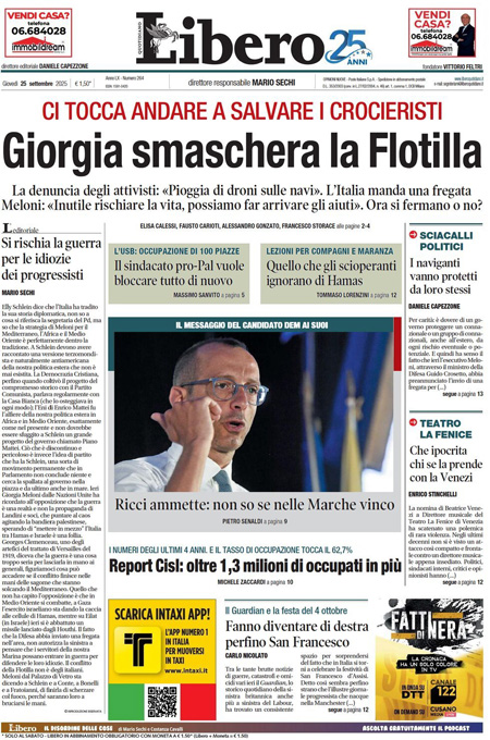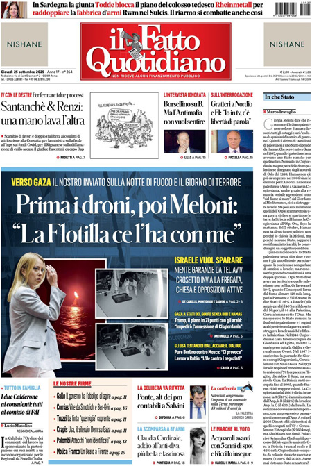 Home » L’EDICOLA, Repubblica: “Meloni attacca la Flotilla”. Il Corriere: “Flotilla attaccata, lite tra i partiti”. Il Giornale: “Militari per salvare i pacifisti”