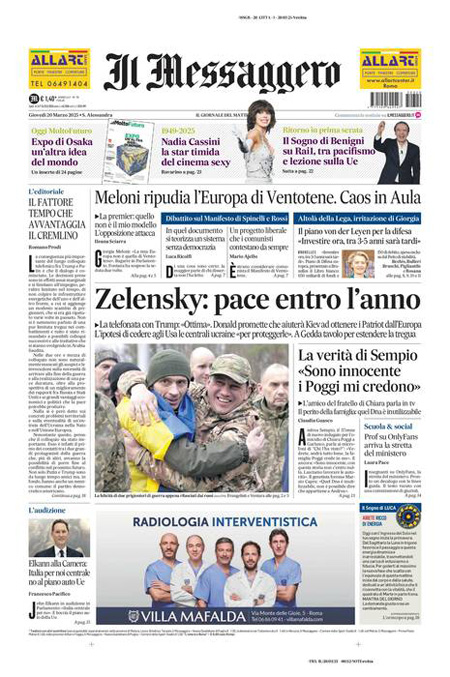 “Zelensky: pace entro l’anno” (Il Messaggero).