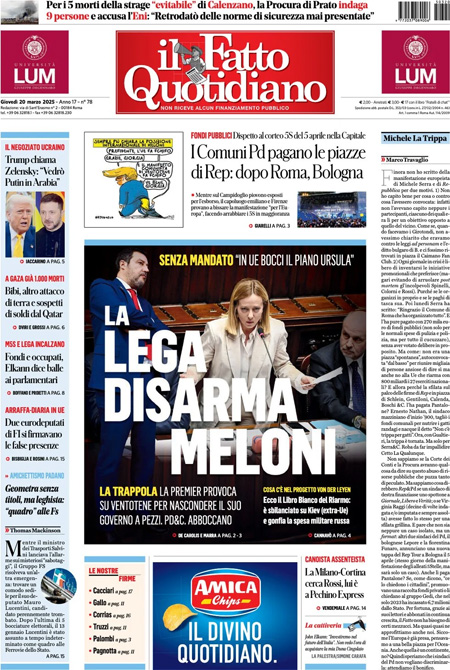 “La Lega disarma Meloni” (Il Fatto Quotidiano).