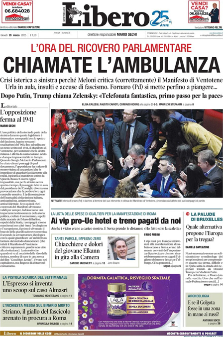 “La verità su Ventotene manda in tilt la sinistra” (Il Giornale).