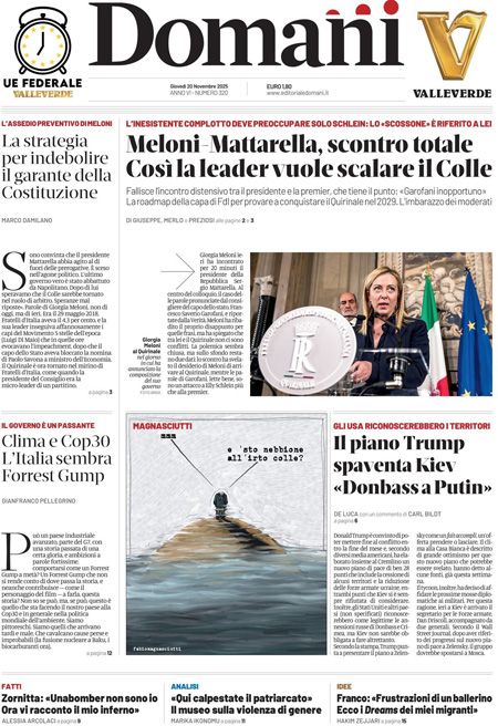 Home » L’EDICOLA, Repubblica: “Meloni va da Mattarella. Dietrofront FdI, è tregua”. Il Messaggero: “Manovra, taglio del canone Rai”. La Verità: “L’uomo di Mattarella conferma tutto però non vuole mollare la poltrona”