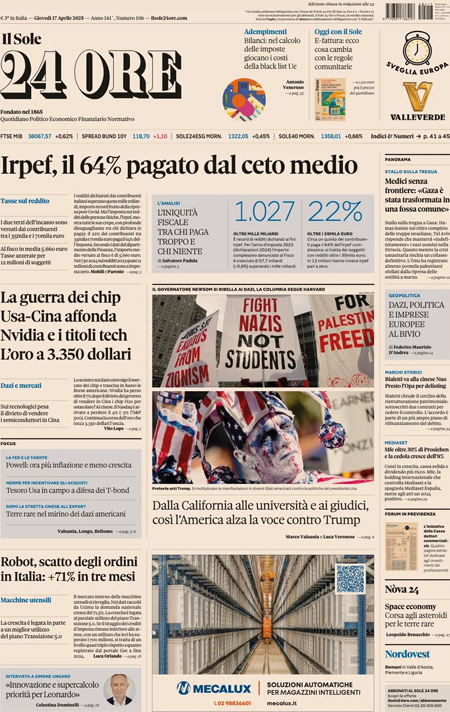 “Irpef, il 64% pagato dal ceto medio” (Il Sole 24 Ore).