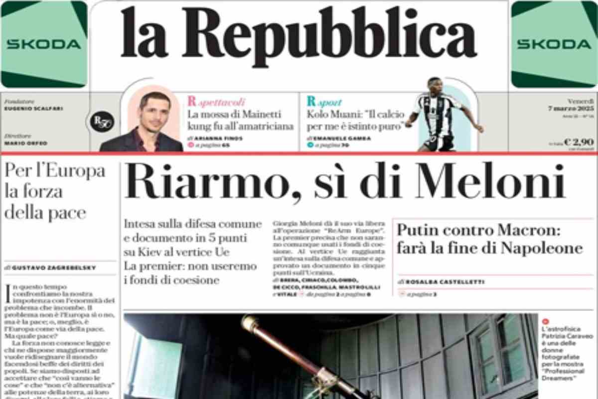 L'EDICOLA, Repubblica: "Riarmo, sì di Meloni". Il Corriere: "Europa, via libera al piano di riarmo". Il Fatto: "Democrazia sospesa per comprare più armi" - Blitz Quotidiano