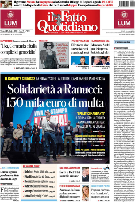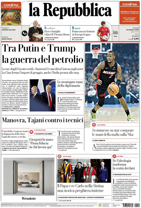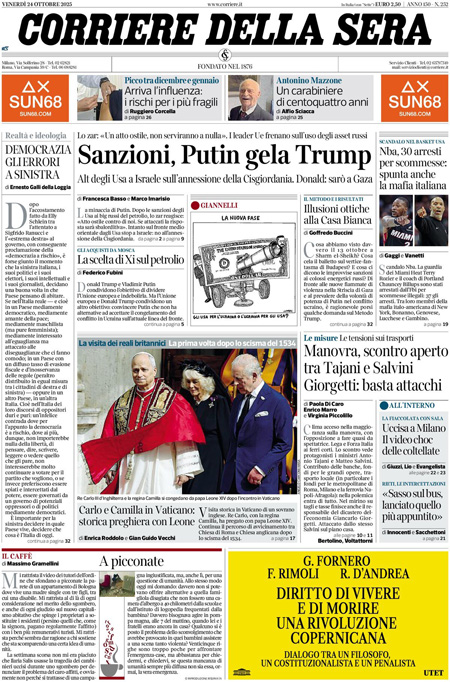 Home » L’EDICOLA, Repubblica: “Tra Putin e Trump la guerra del petrolio”. Il Corriere: “Sanzioni, Putin gela Trump”. Il Fatto: “Solidarietà a Ranucci: 150 mila euro di multa”