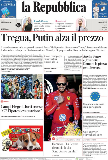 “Tregua, Putin alza il prezzo” (La Repubblica).