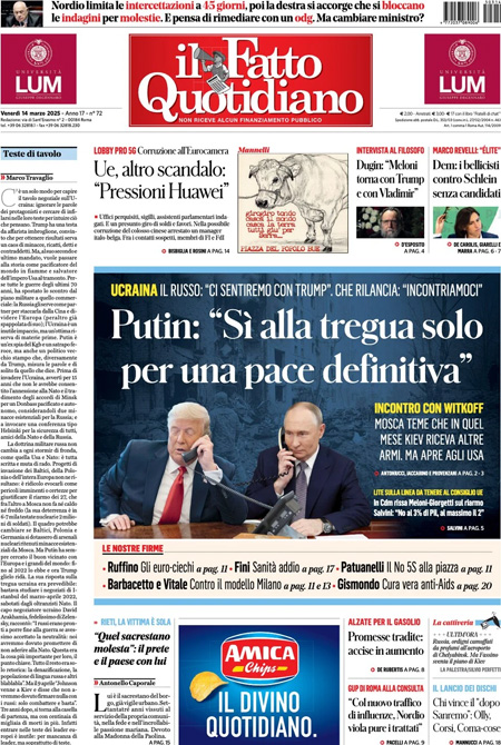 “Putin: Sì alla tregua solo per una pace definitiva” (Il Fatto Quotidiano).