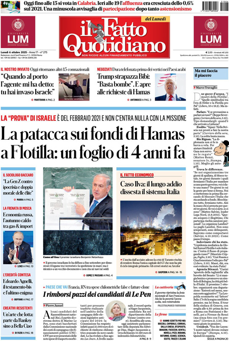 Home » L’EDICOLA, Repubblica: “Trump minaccia Hamas”. Il Corriere: “Trump, ultimatum a Hamas”. Il Fatto: “La patacca sui fondi di Hamas a Flotilla: un foglio di 4 anni fa”