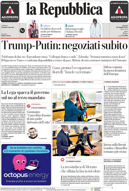 “Trump-Putin: negoziati subito” (La Repubblica).