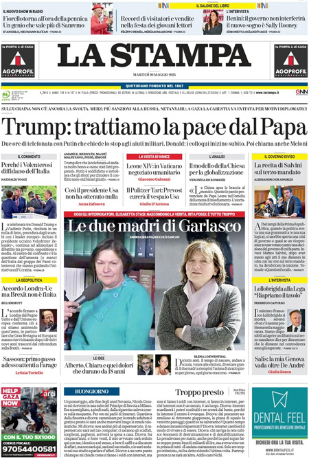 “Trump: trattiamo la pace dal Papa” (La Stampa).