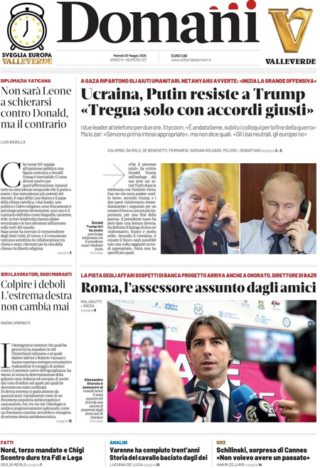 “Ucraina, Putin resiste a Trump. Tregua solo con accordi giusti” (Domani).