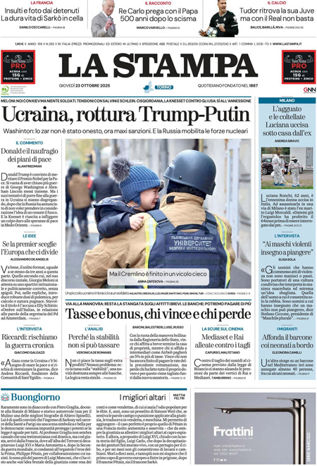 “Ucraina, rottura Trump-Putin” (La Stampa).