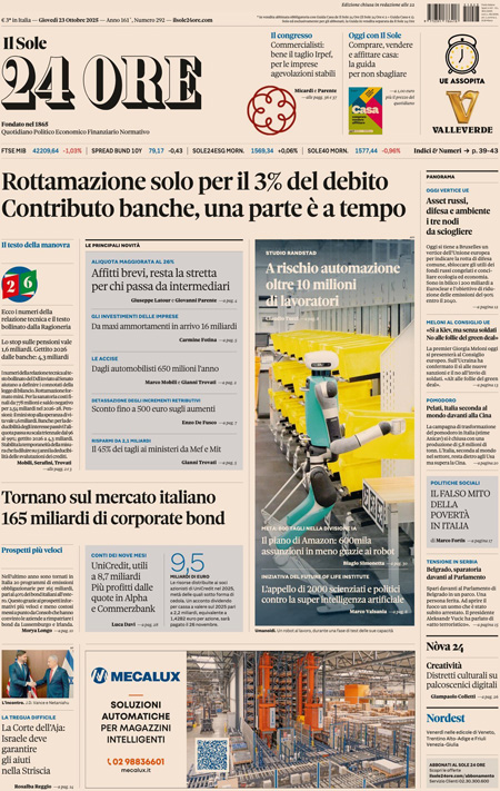 “Rottamazione solo per il 3% del debito. Contributo banche, una parte è a tempo” (Il Sole 24 Ore).
