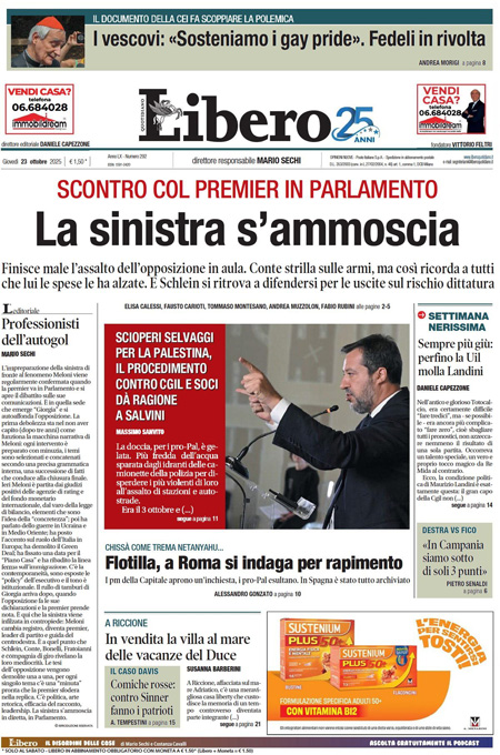 “La sinistra s’ammoscia” (Libero).