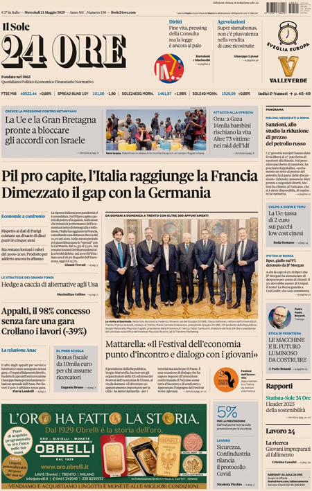 “Pil pro capite, l’Italia raggiunge la Francia. Dimezzato il gap con la Germania” (Il Sole 24 Ore).