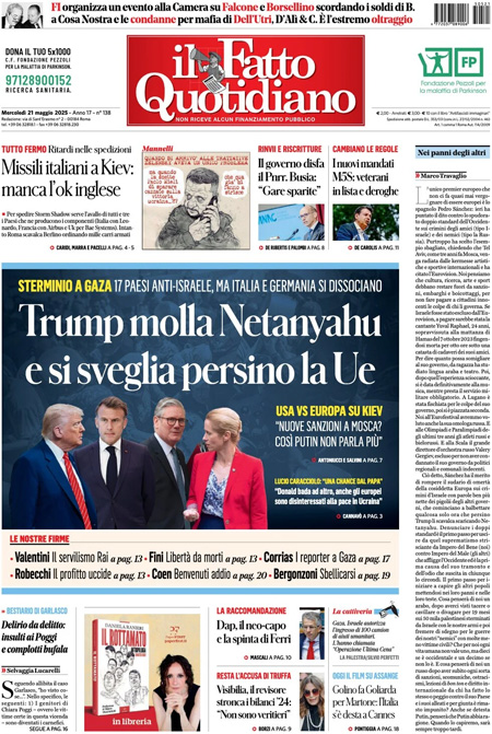 “Trump molla Netanyahu e si sveglia persino la Ue” (Il Fatto Quotidiano).