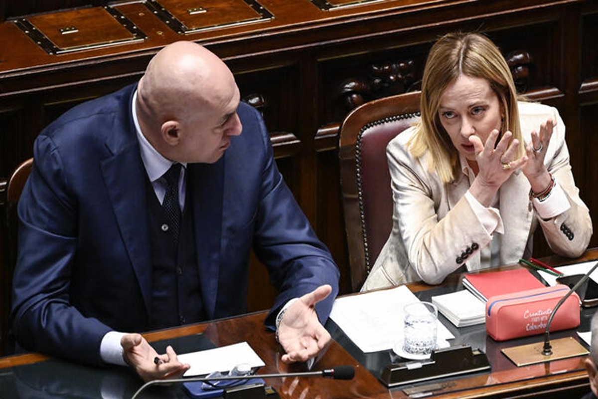 La premier Giorgia Meloni e il ministro della Difesa Guido Crosetto in Aula (Foto Ansa)