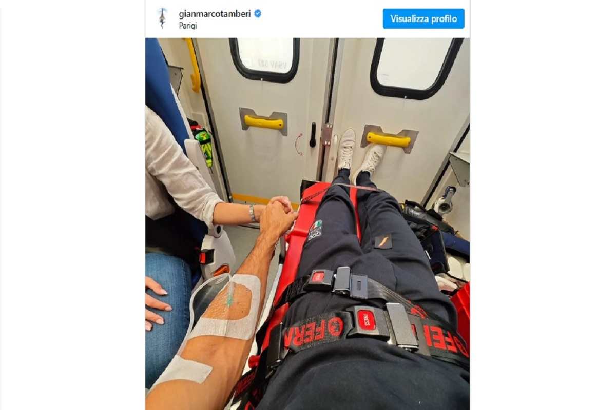 A parlare è anche la moglie Chiara Bontempi attraverso una storia Instagram: “La situazione è questa, siamo in ospedale”. Chiara aggiunge: “Non so che dire”. Nella foto si vede il suo braccio che sorregge quello di Tamberi su cui è attaccata la flebo.