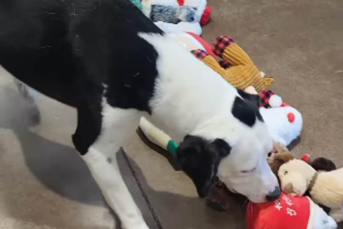 Con l’aiuto della comunità, sono state raccolte donazioni per acquistare tanti peluche, disposti poi sul pavimento del rifugio. Ogni cucciolo ha potuto scegliere il proprio regalo preferito, annusando e prendendosi tutto il tempo necessario per decidere quale giocattolo portare nella sua cuccia.