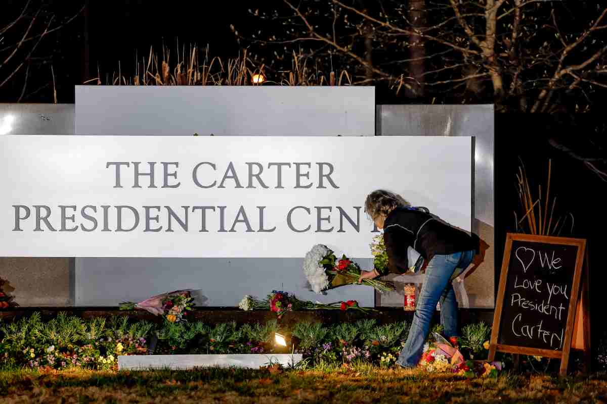 L’immagine simbolo di una dipendente del Carter Presidential Center di Atlanta che riordina i fiori lasciati dalle persone in segno di lutto dopo aver appreso della morte dell’ex presidente degli Stati Uniti Jimmy Carter, deceduto a 100 anni. Carter è morto nella sua casa di Plains in Georgia. Il 39esimo presidente degli Stati Uniti, il più longevo della storia, nel 2002 ha ricevuto un Premio Nobel per la pace. In suo onore, il presidente uscente Joe Biden ha proclamato il prossimo 9 gennaio giorno di lutto nazionale.