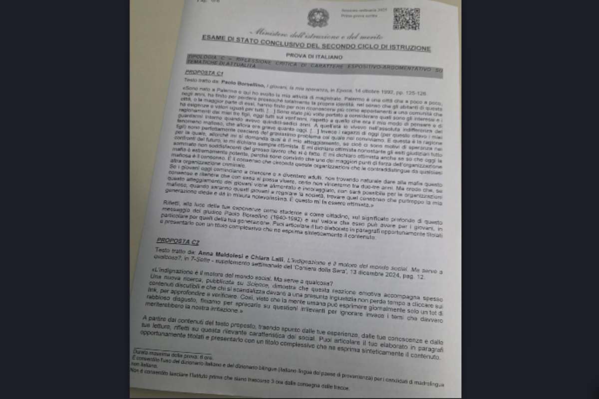 La foto del giorno, il foglio con le sette tracce della prima prova della Maturità (foto Ansa) - Blitz Quotidiano