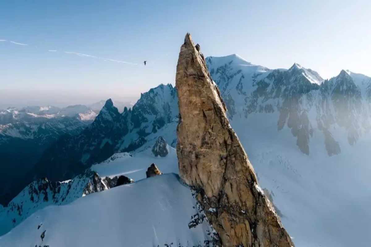 La spettacolare impresa del funambolo e alpinista francese Antoine Mesnage nel massiccio del Monte Bianco.