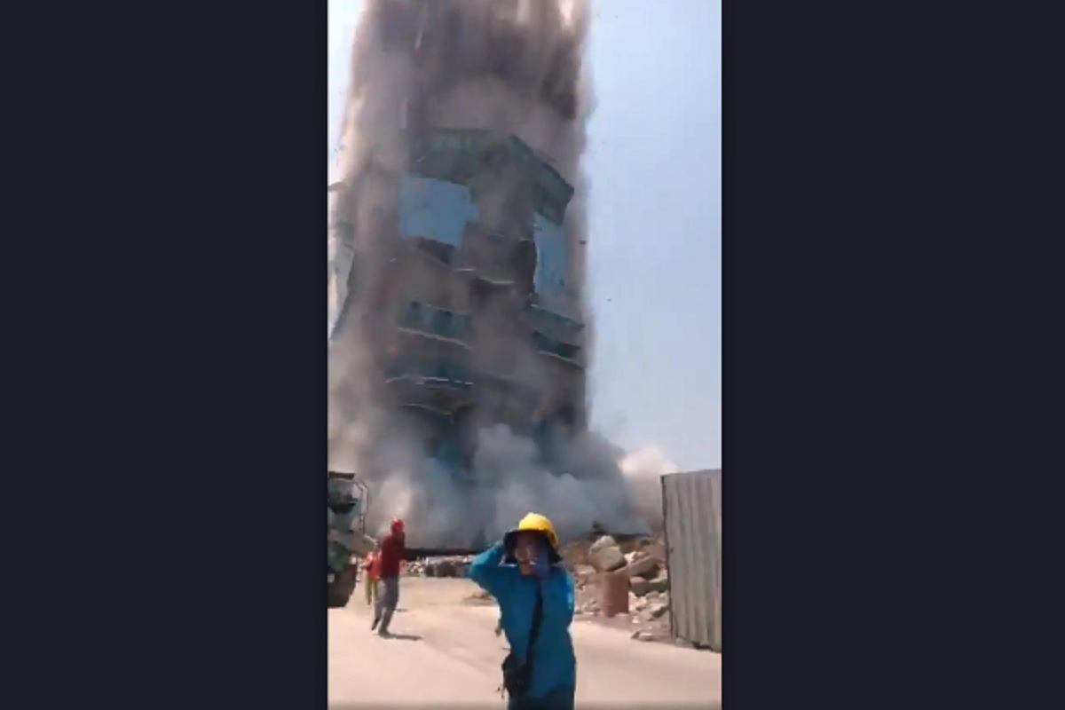 Il frame di un video pubblicato su X mostra il crollo di un grattacielo di 30 piani in costruzione a Bangkok con la gente che scappa. Almeno 43 lavoratori sono dispersi tra le macerie a causa della scossa di terremoto magnitudo 7.7 che ha avuto come epicentro il Myanmar.